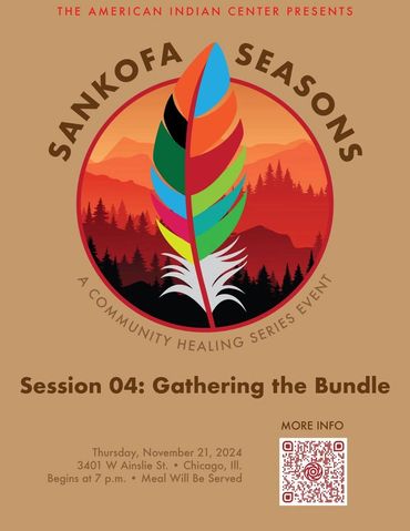 While the Sankofa Seasons interactive project focuses on Black experiences, the overall purpose of Sankofa Seasons is bring people together and build healthy community. As such I host regular workshops at the American Indian Center of Chicago as part of a Community Medicine Bundle grant sponsored by the state of Illinois. These workshops and sessions are community talking circles that combine play, food medicine, somatic movement, journaling, and exploring personal stories to help people to design community and redesign their own experience of themselves and decolonize their lives a little bit.
