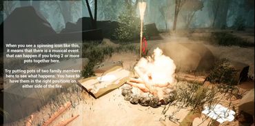 Players find and gather story-pots which hold interviews with participants about their experiences of being Black in America. Once placed on a fire the pot reveals its story, and the player can freely roam the dreamy landscape while listening.